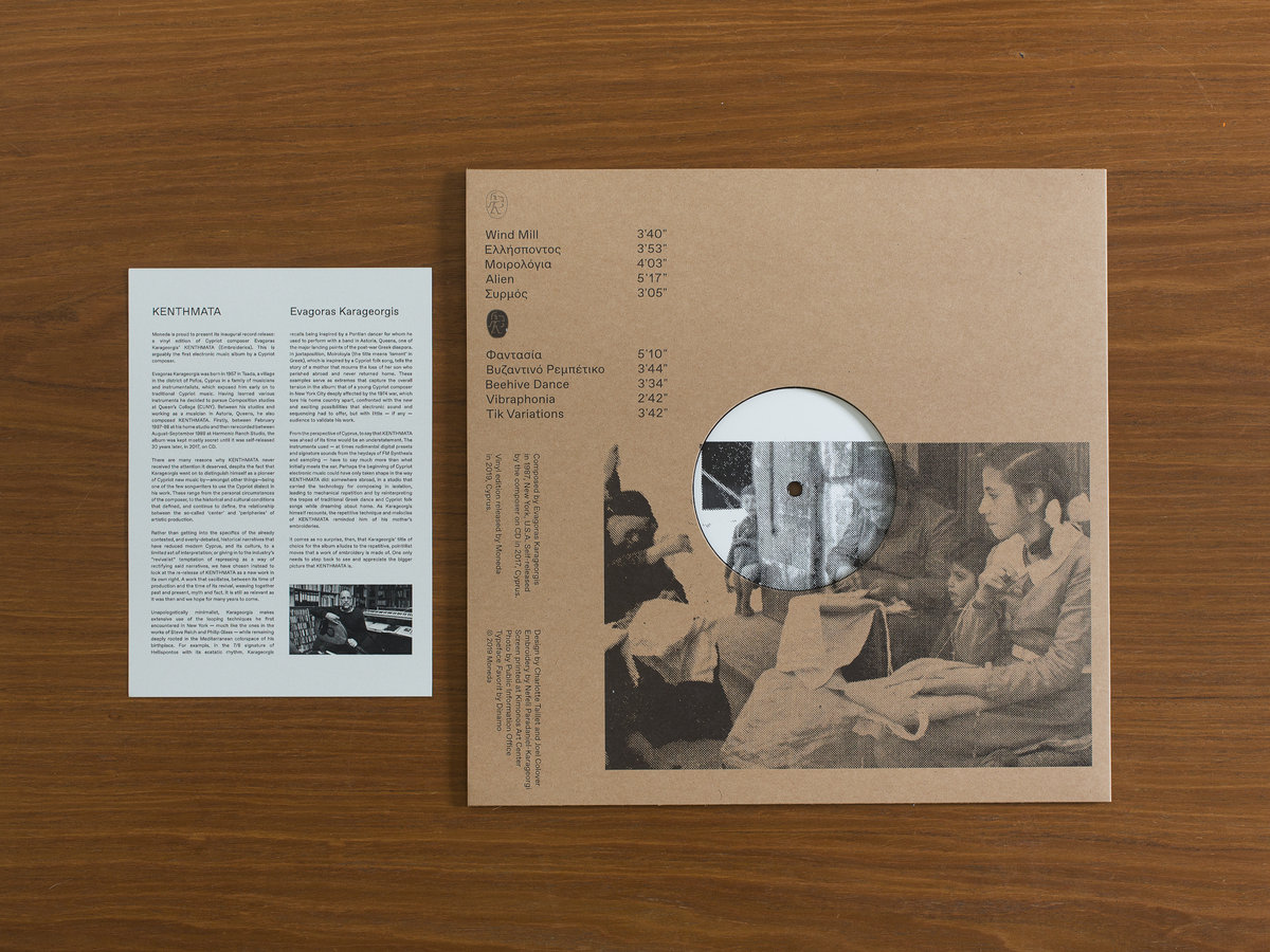 Moneda is proud to present its inaugural record release: a vinyl edition of Cypriot composer Evagoras Karageorgis’ KENTHMATA (Embroideries). This is arguably the first electronic music album by a Cypriot composer.